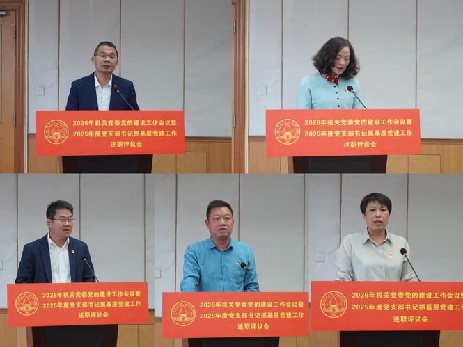 在述职评议环节,研工部/研究生院、校工会、科研、国有资产管理处、基建处等5位党支部书记围绕2025年度抓基层党建的工作成效、存在问题与不足以及下一步工作思路进行现场述职,其他20位党支部书记作书面述职。